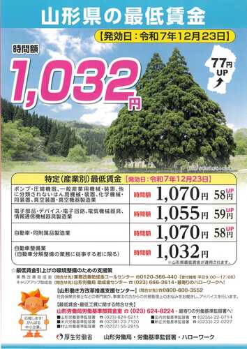 山形県内で働くすべての労働者に適用される「最低賃金」が改正されます