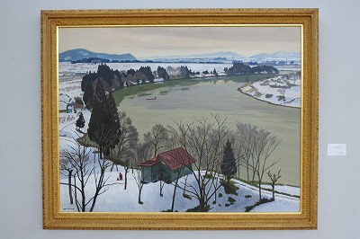 【常設展示室】 真下慶治 画家の眼差し 最上川3 「雪の江村」
