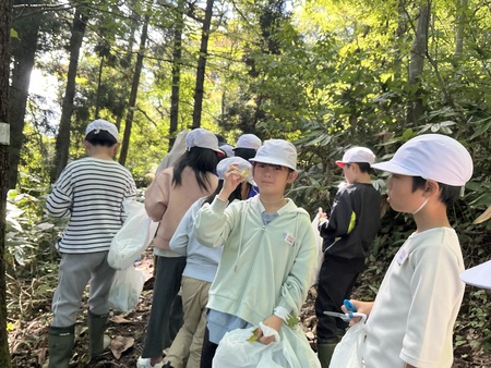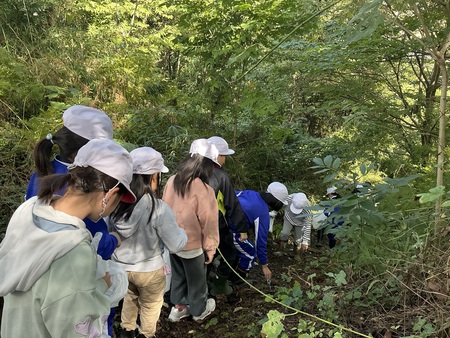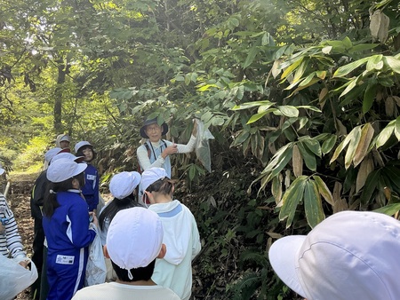 10月3日(金曜)にもう少し冨本の自然を調べてみたいとの思いから、3、4年生が、追加の森林学習を行いました。今回は、講師に環境アドバイザーの白壁洋子先生をお招きし、観察道にある植物について詳しく調べました。秋を感じながら歩き、いろいろな葉っぱを採集しました。見つけたもの全てが在来種ということがわかり、守り抜かれてきた冨本の自然を、またより一層大切にしたいたいという気持ちが強くなりました。