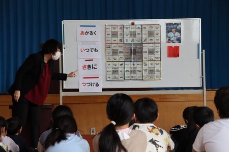 10月14日(火曜)から、94日間の後期が始まりました。その前の週までの109日間の前期で、41名の冨本っ子全員がよく成長しました。これからの後期は、その成長を次の学年につなげる時期です。1年生、3年生、5年生の代表が、後期のめあてをしっかり発表し、みんなの気持ちも引き締まりました。校長先生からは、大谷翔平選手を例に目標を具体的に持つこと、これまで以上の明るい挨拶をがんばることの二つについてお話をしていただきました。よい94日間になるといいですね。