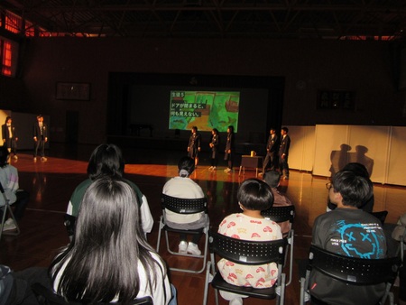 10月27日(月曜)に、5、6年生が、葉山中学校3年生から招待され、英語劇を鑑賞しました。「マチルダ」という劇は、少女マチルダが、様々な理不尽に誠実さや不思議な能力で挑み、最後に幸せになるという劇でした。監督・大道具・小道具・キャストもすべて生徒たちで作り上げていて、中学3年生の流ちょうな英語に驚きつつ、自分も上手に英語を話したいという思いをもちながら鑑賞しました。葉山中の皆さん、ありがとうございました。