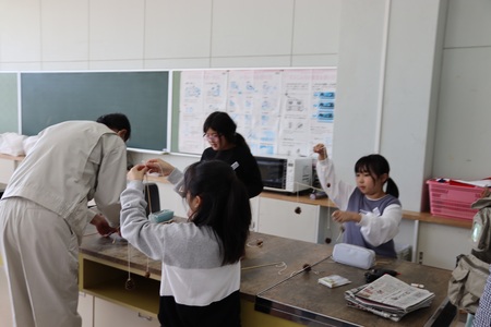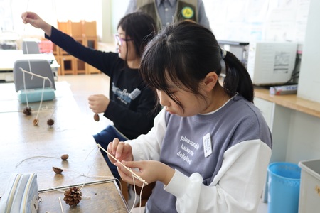 10月30日(木曜)に、3年生の森林学習が行われました。今回は、木の実を使ったモビール作りです。うまくつり合いがとれるように、友達と工夫しながらがんばりました。松ぼっくりやどんぐりなど、秋らしくかわいいモビールができてにっこり笑顔の子どもたち。作品は、11月1日の150周年記念式に合わせて、展示されます。どうぞご覧ください。