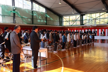 11月1日(土曜)に、たくさんのご来賓、地域や保護者の方々と共に、村山市立冨本小学校創立150周年記念式典が行われました。オープニングを5年生の大黒舞が飾り、志布村山市長さんから「冨本の自然は素晴らしい。大人になって地区外に出たときに、より一層その素晴らしさを実感する。」とお祝いの言葉をいただきました。また、6年大沼晴彦さんが、「150年の歴史を調べていく中で、より冨本が大好きになった。」と児童代表の言葉を堂々と発表しました。最後に、全員で校歌を高らかに歌いました。冨本小学校創立150周年 おめでとうございます!