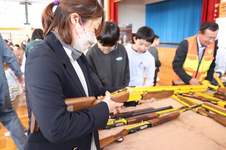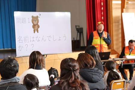 12月6日(土曜)に親子講演会が開催されました。同日に、1月からのスキー学習に備えて、PTA体育部とスキー愛好会の方々によって、ロープ・トゥも設置されました。親子講演会では、村山市の猟友会の方より、クマの生態や出合った時の身の守り方などをお聞きし、大変勉強になりました。最後に2度目の連凧あげに挑戦。今回もなかなか風に恵まれず、次回に持ち越されました。ご来校いただき、ありがとうございました。