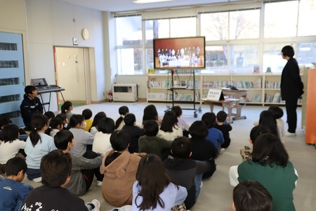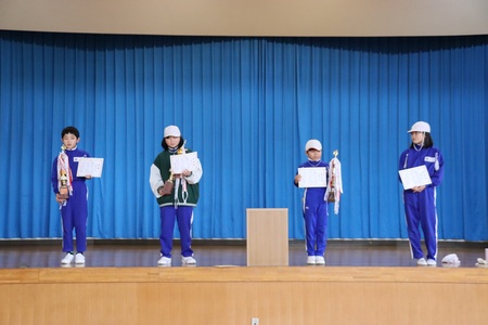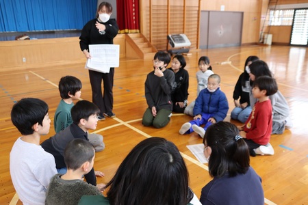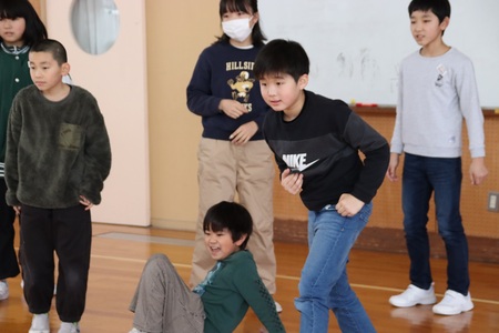 12月19日(金曜)は、後期前半最終登校日でした。朝会を行い、校長先生と一緒に、この47日間を全校生で振り返りました。目標に向かってがんばるところは、特に11月の学習発表会と先日行われた縦割り班対抗長縄跳びでのがんばる姿をほめていただきました。あいさつについては、スマイル委員会の高学年児童の意見をみんなで聞き、自分のあいさつについて振り返りました。また、高橋遥子養護助教諭が産休に入ることもお知らせしました。高橋先生、これまでありがとうございました。そして、全校生がこの冬休みを元気に過ごせるよう願っています。よいお年をお迎えください。