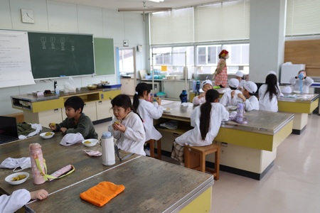 収穫したサツマイモを使って、1、2年生が、スイートポテトを作りました。ほかほかほくほくのサツマイモをつぶして、バニラアイスとバターを入れました。それを丸めて、オーブントースターで焼きます。でき上がるまで楽しみに待ちました。手作りのスイートポテトは、とってもおいしくて、大満足でした。
