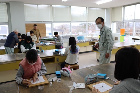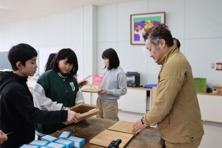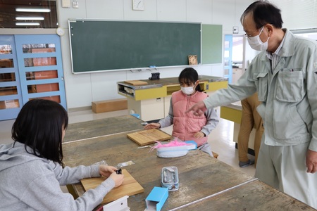 12月11日(木曜)に5年生の森林学習が行われました。今回は、マイ箸を作ります。まず、材料の木にカンナがけをします。次に丁寧にやすりをかけて出来上がりです。みんな器用にカンナをかけていて上手でした。自分で作った箸で食べるご飯は、きっとおいしいことでしょう。