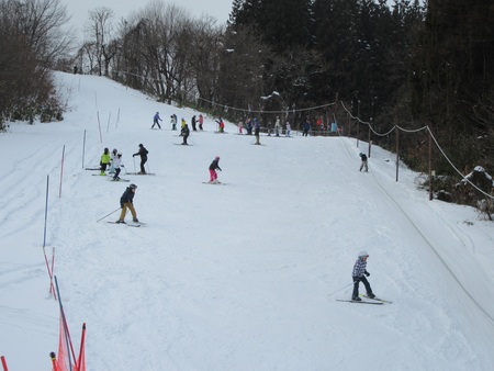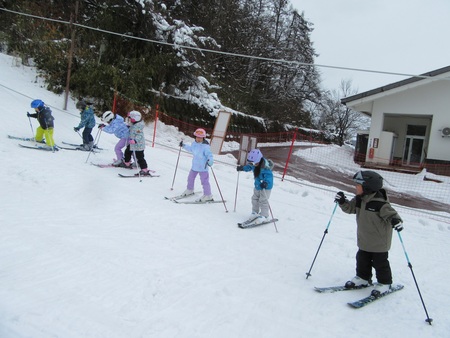 1月13日(火曜)から、スキー学習が始まりました。今年も地域のスキー愛好会後藤さんや渡辺さんが毎日のように教えてくださったり、ロープトゥを操作してくださったりとお世話になります。初めて学習する1年生は、片足ずつスキーを履いて感触を確かめました。2年生は、ロープトゥで3、4メートル登って滑りながら、昨年までの感覚を思い出しました。3年生以上は、斜面を自由に滑りながら楽しみました。1月30日の校内スキー記録会に向けてがんばってほしいものです。