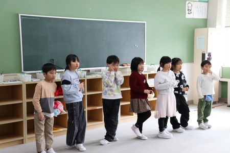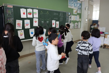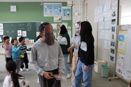 2月3日は節分の日。1、2年生は、豆まきをしました。節分のいわれを読み聞かせしてもらい、自分の心の鬼をカードに書いて、教室の黒板に貼り、それに向かって豆をまきました。すると、なんと本物の鬼の登場!(6年生です。)わいわい楽しく豆まきをして、節分を堪能しました。みんなの心の鬼、退治されたかな。