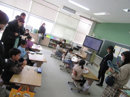 2月17日(火曜)は、トミー先生が来てくださる日。1、2年生が、外国語の学習に取り組みました。この日は、動物について身振り手振り物まねしたり、クイズやゲームをしたりしながら、元気に活動できました。次はどんな学習になるか、楽しみです。