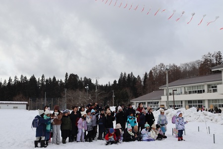 2月7日(土曜)の授業参観後に、創立150周年記念の連凧あげを行いました。11月1日(土曜)の記念式典から、これまで何度もチャレンジしましたが、なかなかよい風に巡り合えずにいました。ついに、天気もまずまず、風の強さもよいという絶好のコンディションとなったのです。たくさんの保護者や全校児童が見守る中、地域や保護者、子どもたち、教職員の願いや夢を乗せて、150枚の凧が大空高く舞い上がりました。素晴らしい光景に、大きな歓声が上がりました。凧の作成にご協力くださいました皆様、ありがとうございました。