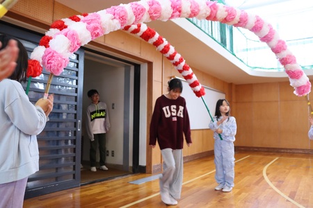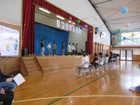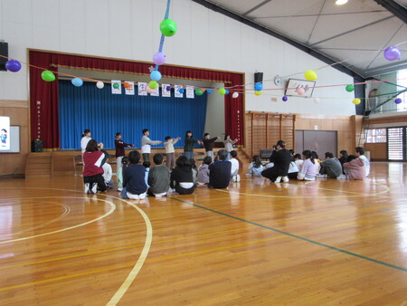 2月25日(水曜)に、6年生を送る会を行いました。6年生に「楽しんでもらう」「安心してもらう」「ありがとうの気持ちを伝える」というねらいで、5年生が中心となり企画運営しました。3、4年生の持つ花のアーチとみんなの拍手で6年生を迎えました。小学校の思い出や中学校でがんばりたいことなどを6年生にインタビューしたり、全員でジャンケン列車をしたり、各学年からの発表があったりと、充実の内容でした。6年生からの、各学年への替え歌のお礼は、とてもおもしろく、何度も笑い声が上がりました。最後に記念写真をとり、笑顔いっぱいの時間になりました。あと卒業式まで少しですが、6年生とたくさんふれあってほしいものです。