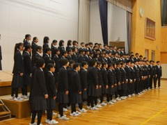 1日(土曜)、発表デーを開催しました。吹奏楽部の合奏発表をスタートに、3年生の英語劇「マチルダ」の披露、1・2年生の総合的な学習の時間の発表、最後は全校合唱「ハレルヤ」で締め、全校生徒が発信に力を入れた一日でした。3年生は練習時間の少ない中、演者は見事に演じ切り、裏方の生徒も大道具、舞台展開、照明などそれぞれの持ち場で協働して作り上げました。最後の合唱は声量、ハーモニー、歌う姿すべてがそろい、完成度の高い感動的な合唱でした。