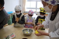1月15日(木曜)、1・2年合同で「だんごさし」を行いました。老人クラブの方からご協力いただき、ミズキを固定していただいたり、だんご作りのお手伝いをしていただいたりしました。だんご木は、色鮮やかなだんごや飾りがたくさんあり、とても見事な出来栄えでした。