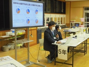 11月26日(水曜)、PTA各役員の方々や学校医の高橋先生と学校歯科医の菊地先生から参加していただき、学校保健委員会を行いました。担当職員から、児童の保健関係と体育関係の報告があり、その後2つのグループに分かれて、生活リズムや体力づくりについて話し合いました。校医の先生方からは、最後に子ども達の健康に関わる貴重な話をお聞きすることができ、今後に役立てていきたいと感じました。