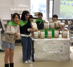 5年生では、総合的な学習の時間で、「米作り体験」を行い(1次産業)、収穫した米をブランド化・商品化して(2次産業)、販売する(3次産業)までの6次産業プロジェクトを展開しています。11月3日(月曜日)に道の駅むらやまの「収穫感謝祭(一般の方向け)」、11月21日(金曜日)に楯岡小学校の「学習発表会(保護者向け)」で数量限定で販売します。心を込めて手植え・手刈り・天日干しした楯岡小米「にじのはし(品種:はえぬき)」は一味違います。皆様、どうぞお買い求めください。