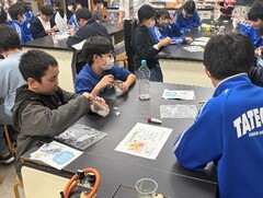 6月18日(水曜日)、山形県埋蔵文化財センターの方々を講師にお迎えし、「縄文時代出前授業」を行いました。子供たちは、縄文時代の人々のくらしや食生活についてのお話を聞いたり、土器や石器を実際に観察したりしながら学びを深めました。また、弓矢体験や石器を使って野菜を切る体験を通して、当時の道具の工夫や人々の知恵にも気付くことができました。「今の生活がどれだけ便利か」「昔の人はすごい」といった感想をもち、現代と昔を比べながら、歴史への関心を高めました。