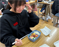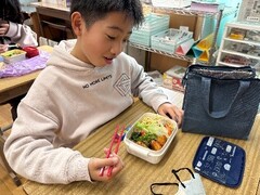 11月25日(火曜日)に「弁当の日」を実施しました。今回は、家庭科「こんだてを工夫して」で学んだ栄養のバランス、彩り、そして、調理の基本を活かしました。事前に鑑賞した映画『弁当の日』からも、「自分で作る」ことの意義を学び、主菜と副菜を自分で調理してお弁当に詰めて持参しました。工夫を凝らした力作が並び、子供たちは満面の笑顔でお弁当を広げました。この体験を通し、日々の食事を作ってくれる家族への感謝の気持ちや、食が命とつながっていることの大切さを深く学ぶことができました。