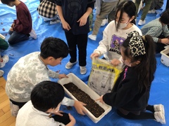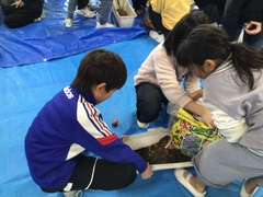 12月5日(金曜日)に、緑の少年団で「街角花いっぱい運動」の一環として、プランターにチューリップの球根を植えました。4年生の子どもたちは、春に多くの人を迎えることができるようにという思いをもって、グループで力を合わせてチューリップの球根を植えていました。春にきれいな花が咲くように、大切に育てていきます。