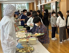 7月25日(金曜日)、PTA家庭サポート部の主催により2学年以上の保護者を対象とした「第2回給食試食会」を開催しました。当日は、青木栄養教諭より本校の給食指導や献立の工夫、食育の取り組みなどについて説明がありました。その後、保護者の皆さんには実際に給食を盛り付けていただき、児童が日頃食べている給食を味わっていただきました。参加された保護者からは「栄養のバランスや味付けの工夫がよく分かった」「家庭ではなかなか出せないメニューもあって参考になった」など、多くの感想が寄せられました。今回の試食会を通して、学校給食への理解を深めるとともに、家庭での食育にもつながる有意義な時間となりました。