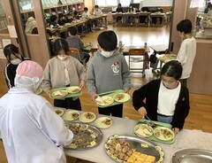 12月6日(金曜日)に6年生の特別な行事としてバイキング給食を実施しました。事前の指導で、「栄養バランス」「適量判断」、そして「思いやる心」を学んだ児童たち。豪華な料理を前に目を輝かせながらも、並んでいる仲間に「もらってもいいですか?」と声をかけるなど、最高学年としての優しい配慮が見られました。調理員さんが多めに作った料理も残さず完食し、片付けの際には自分の言葉で感謝を伝える姿に成長を感じました。楽しい食事を通して、食への感謝と周りを思いやる心を深めました。
