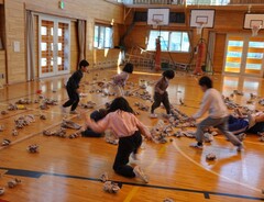 5月20日(火曜日)に、たてやま大運動会に向けて全校で結団式を行いました。運営部の児童は、4月から組分けやスローガン決めを計画的に進めてきました。この日は、6年生全員が各部に分かれて役割を果たし、結団式を支える姿がとても頼もしく見えました。応援部は下級生を教室からアリーナへ案内し、準備部や看板部は「大丈夫だよ」と声をかけながら1・2年生を優しくリードしました。実行委員長から「全員の心に残る運動会にします」という宣言があった後、大運動会スローガン発表や各組の組頭と団長のあいさつなどがありました。そして組分け抽選は、運営部のアイディアで、あらかじめ絵の具を仕込んだペットボトルを組頭が選び、、振って現れた色水で組の色を決めるというユニークな方法でした。そして決まったのが1組が白、2組が赤、3組が青となりました。楯岡小最大の学校行事の一つ「たてやま大運動会」がいよいよ本格始動です!