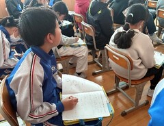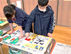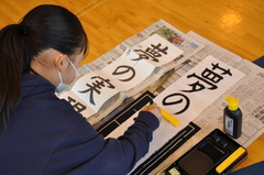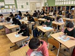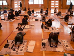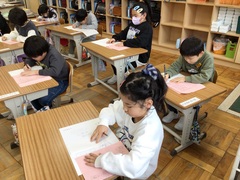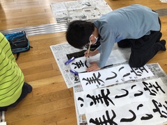 1月13・14日(火・水曜日)、校内書初め会が開かれました。1・2年生は硬筆、3から6年生は毛筆で、課題の文章や言葉を書きました。冬休み前に、村山書道会から講師の方々をお招きし、特に3年生以上に指導いただきました。学んだことを冬休みで練習し、そして、その学びを書初め会で存分に発揮していました。心を穏やかに活動に向かい、丁寧に書く力やこだわりをもって活動に取り組む力が高まりました。