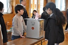 1月21日(水曜日)に、来年度のリーダーを決める「児童会委員長選挙」を行いました。選挙管理委員は、本物の投票箱を借りるなど準備に尽力し、5年生へはリーダーとしての心構えを熱心に伝授してきました。当日は、3年生以上が立会演説会に参加しました。委員長候補、推薦者の演説を見守る子供たちは、一言も聞き漏らさない真剣な表情でメモを取りました。村山市選挙管理委員会からお借りした本物の投票箱に票を投じるときには、「自分たちのリーダーを自分たちで選ぶ」という一票の重みを肌で感じていました。6年生が築いた伝統を次代へ繋ぎ、全校児童が「これからの楯岡小学校」を自分事として考えた一日となりました。