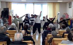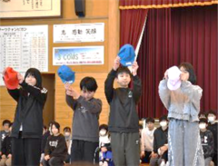 2月13日(金曜日)に、あおぞら学級で、「デイサービス香紅の里」を訪問し、昨年6月にいただいた雑巾100枚のお礼に、学校を代表して踊りを披露しました。子供たちは、「Bling-Bang-Bang-Born」と「よさこいソーラン」を元気いっぱいに踊り、利用者の方にたいへん喜んでいただきました。子供たちにとっても、たいへんよい機会となりました。
