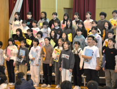 インフルエンザ等の感染症対策のためアリーナで直接観ることのできる人は限定されましたが、どの学年も生き生きと発表し、見応えのある発表ばかりとなりました。