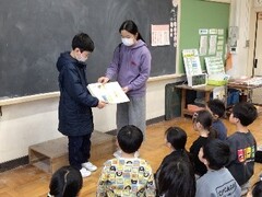 9月17日(水曜日)、1年生が楯岡元気なまちづくり協議会の方から、星型の反射材キーホルダーをいただきました。協議会長さんからは、「地域の方に元気なあいさつをして、安全に登下校してほしい」とのお話をいただきました。児童は、反射材の役割や交通安全の大切さについて改めて考える機会となり、交通ルールを守って安全に生活しようという意識を高めることができました。今後も、地域の方々とのつながりを大切にしながら、安全な登下校を心がけていきます。