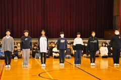 1から4年生のパワーあふれる応援を受け、5・6年生の力強い決意発表や選手紹介の言葉が体育館に響き渡りました。