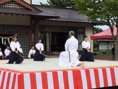 9月8日(日曜日)に居合神社で行われた「第9回林崎甚助重信居合道祖偲ぶ催事 道祖誕生之地 熊野居合両神社 居合道演武会」に、楯岡小学校の児童11名が参加しました。
