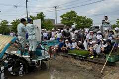 5月24日(金曜日)に、JAみちのく村山の村山市青年部の方のご協力のもと、村山産業高校の生徒さんにサポートいていただきながら、田植え体験学習を行いました。