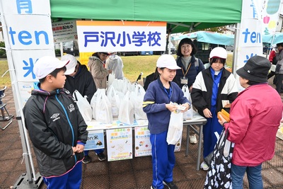 5年生がふるさと産業フェアで、新米の販売を行いました。